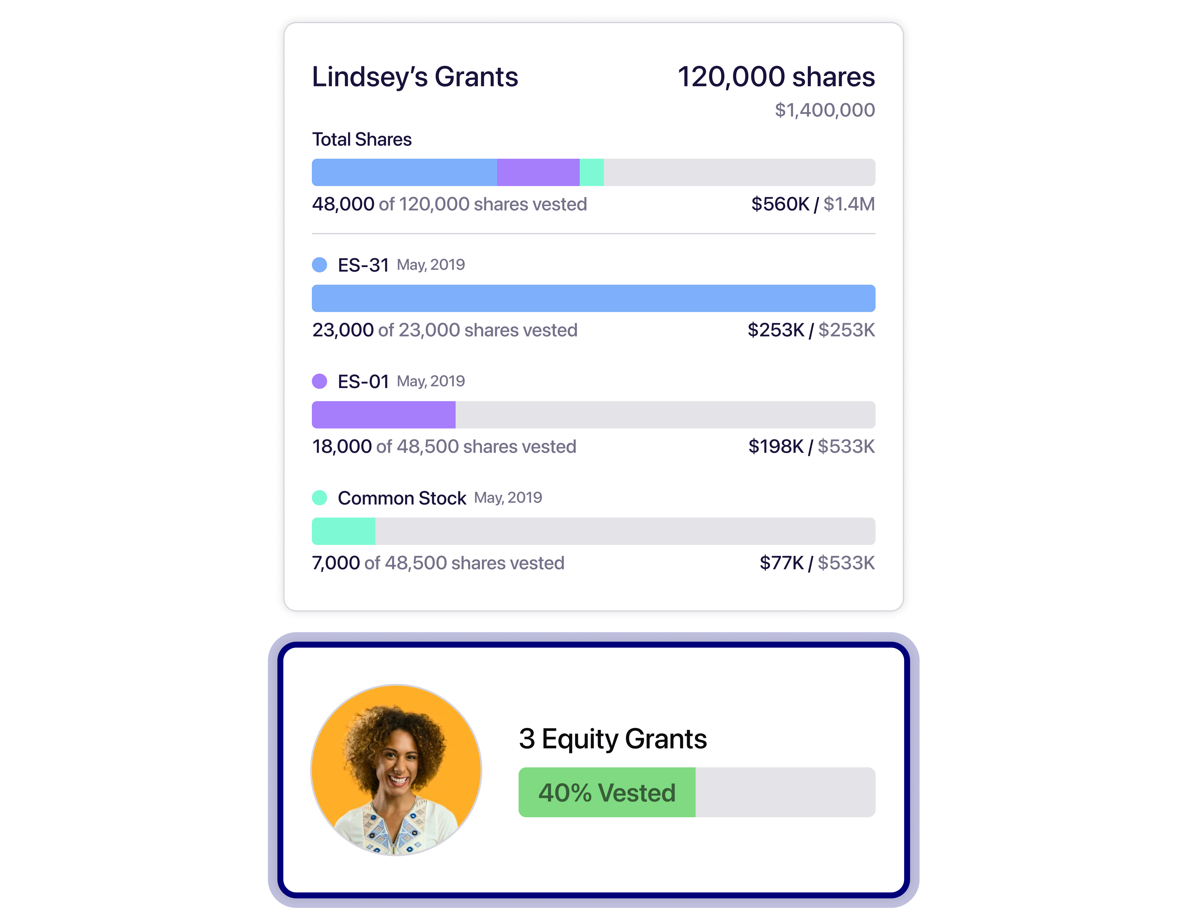Pequity presents equity at the grant level so employees get a better understanding of the true value of their equity compensation and the ability to see their equity status-in real time.
